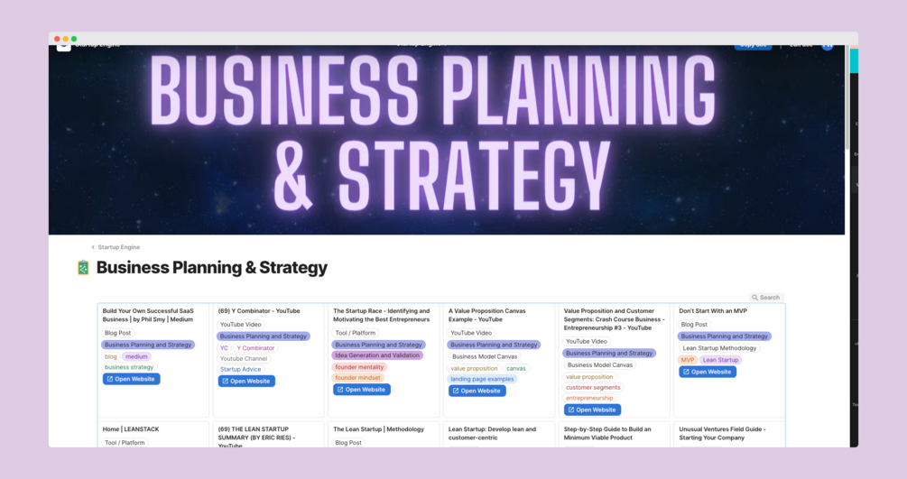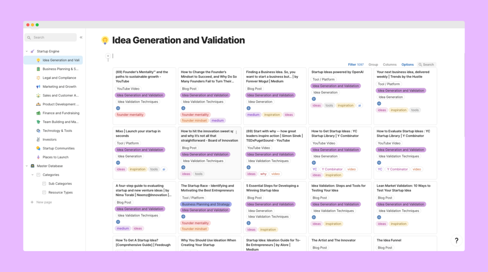 Save hundreds of hours on research all neatly organized in a single place. It's time to take control of your startup journey.